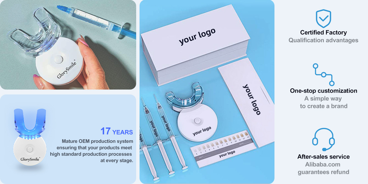 Glory Smile Best Seller Luxury Boxed Tooth Bleaching Kit Home Set Wholesale Teeth Whitening Kits Private Logo WIth Gel Syringe